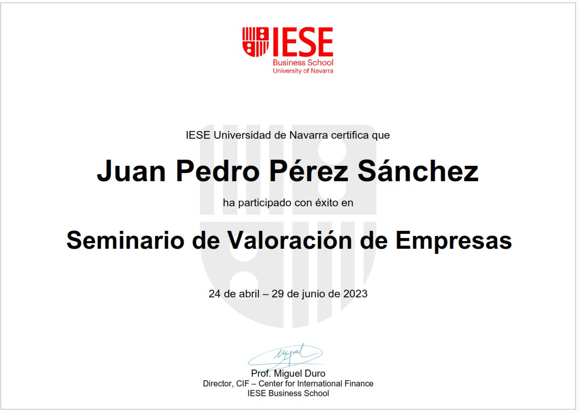Juan Pedro és un professional molt expert en finances en valoració d'empreses. Coneix bé les tècniques i com aplicar-les a empreses de múltiples sectors